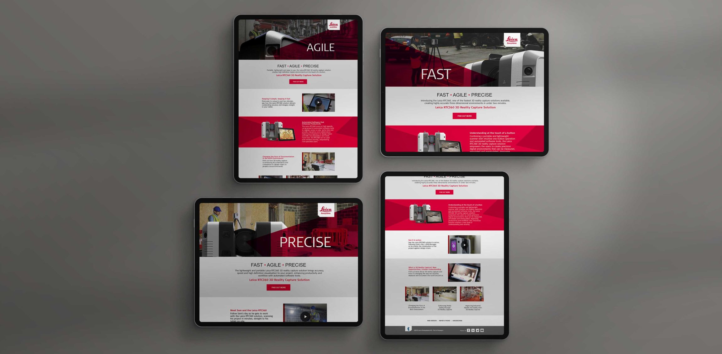 Three key attributes of the Leica RTC360 would be highlighted, defining it as Fast, Agile, Precise. Content was developed around this media-neutral idea to explain the product applications, opportunities and benefits, and targeted at potential buyers through a range of digital channels including electronic direct mail and paid social, native and display advertising.