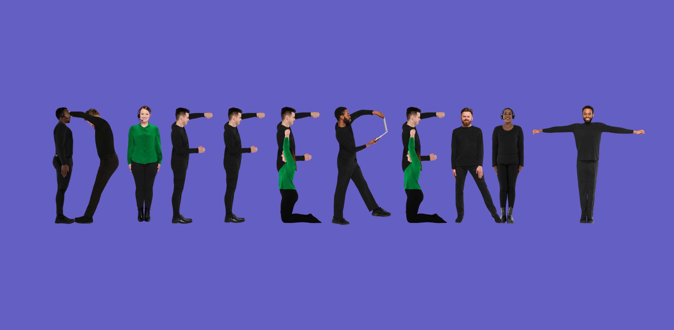 Sigma’s teams across the UK and South Africa were photographed forming (some trickier than others) letter shapes to spell out the words in Sigma Connected’s core messaging, like “CONNECTION”, “PEOPLE” and “DIFFERENT”.