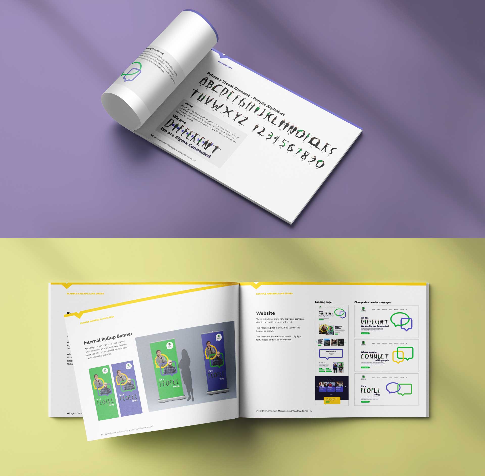 The human alphabet was reinforced by colourful speech bubbles that again enforced the overarching themes of connection and communication but in a bright, bubbly and approachable way that was instantly recognizable across Sigma Connected’s website and collateral.